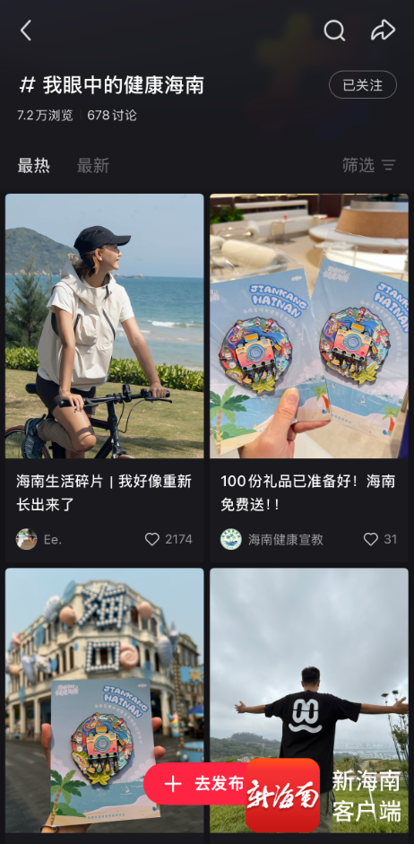 活动自正式启动以来,得到社会公众广泛的关注和参与。例如,目前在小红书平台的“我眼中的健康海南”话题下,已有不少作品发布,总体有7万+的浏览量以及过百条评论。