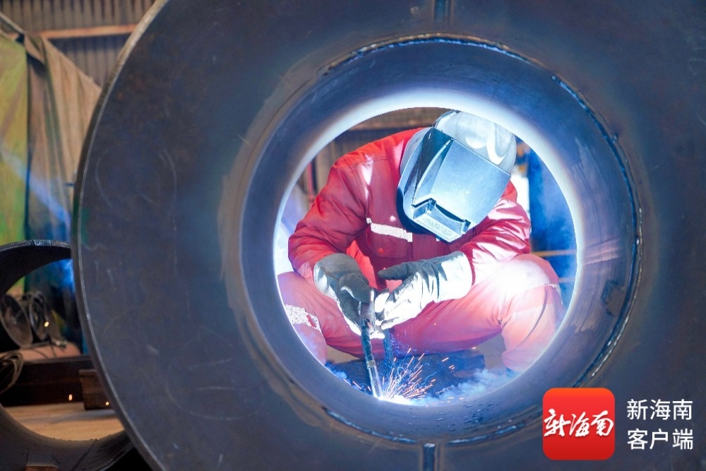 我国首个海上注碳增气技术示范应用项目海上平台开工建造,图为现场施工场景。中国海油供图