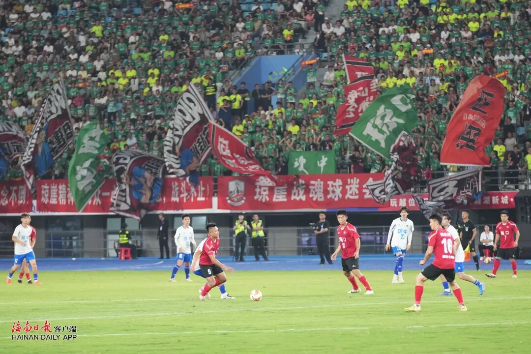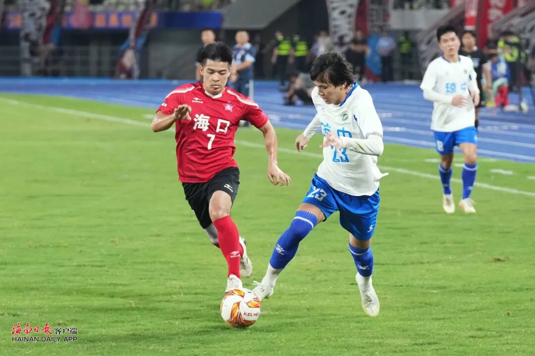 19时35分,决赛正式开始。体育场内,呐喊声、助威声此起彼伏;绿茵场上,双方球员你追我赶、攻防交错,比赛进程胶着激烈、扣人心弦,每一次精准传球都引发惊叹,每一次犀利射门都牵动人心。随着比赛时间一分一秒过去,最终,海口队2∶0战胜琼中队,获得本届“琼超”联赛冠军。