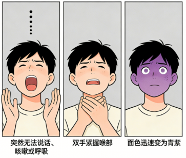 1.突然无法说话、咳嗽或呼吸。