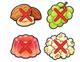 儿童:应避免食用整粒坚果、果冻、带核水果(如整颗葡萄)、爆米花等食物。要养成安静进食的习惯(如图2)。
