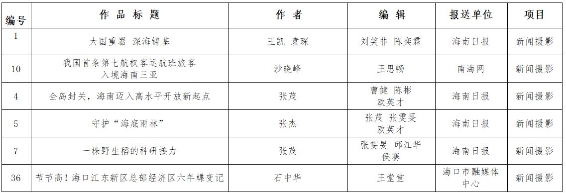 第36届中国新闻奖海南参评作品(新闻摄影)公示公告