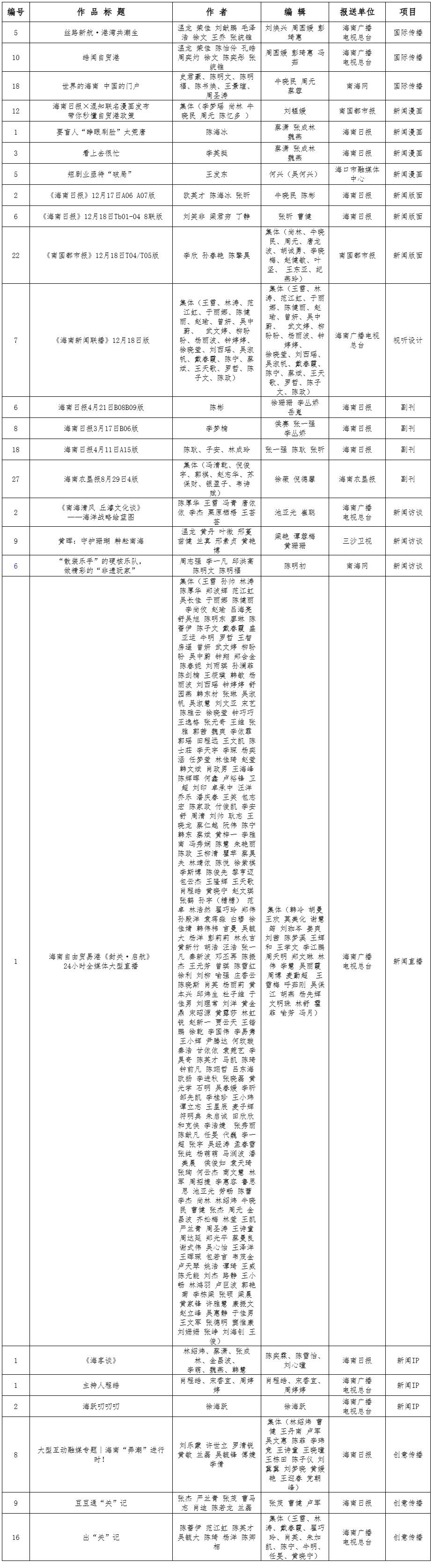 第36届中国新闻奖海南参评作品(专项类)目录