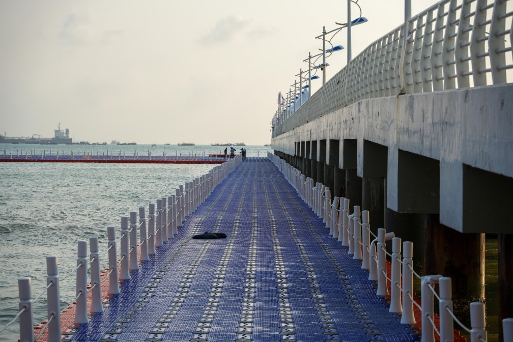 游泳场馆位于海月广场栈桥附近及周边海域,将同时举办公开水域游泳和水球两个分项比赛。其中公开水域游泳设有男子5公里、女子5公里,以及4×1.5公里男女混合接力三个小项;水球项目分别设置男子、女子两个小项。