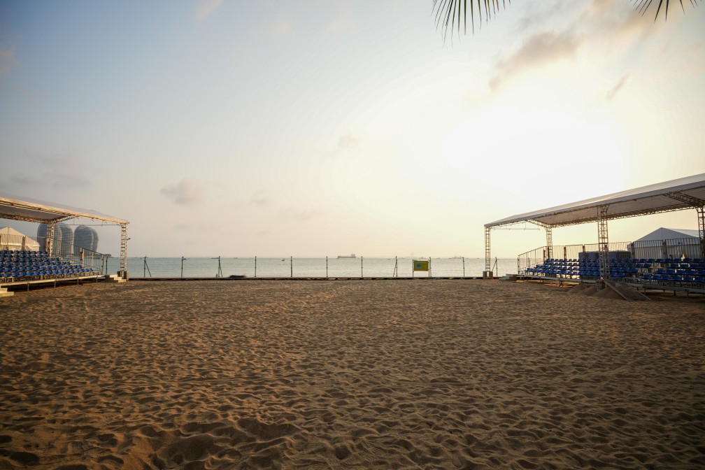 沙滩卡巴迪赛场位于海月广场周边滨海沙滩区域,场内共规划6块场地,包含分别是1块男子比赛场地、2块男子热身训练场地、1块女子比赛场地和2块女子热身训练场地。本项目竞赛设置男子85公斤及以下、女子75公斤及以下两个小项。
