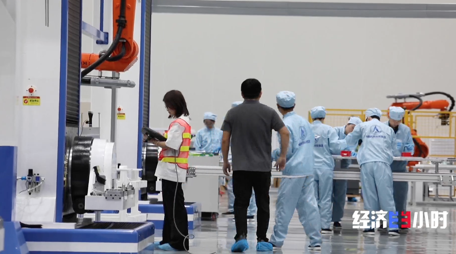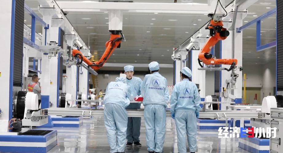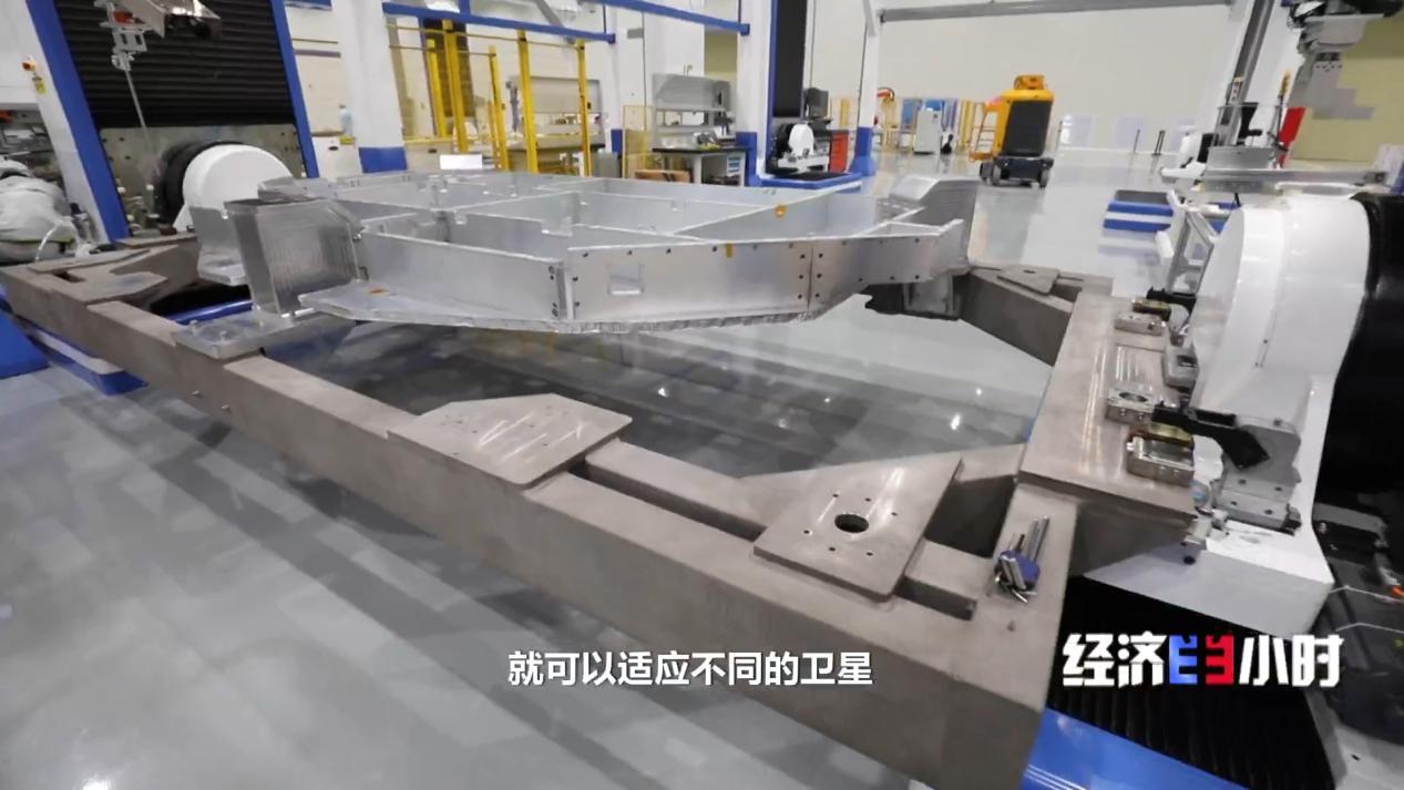工厂里正在安装调试首条卫星生产线,其中一大亮点,就是可以柔性生产不同尺寸的卫星,实现降本增效。