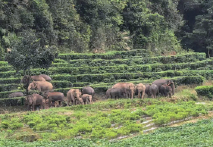 图为云南西双版纳亚洲野生象群迁徙。