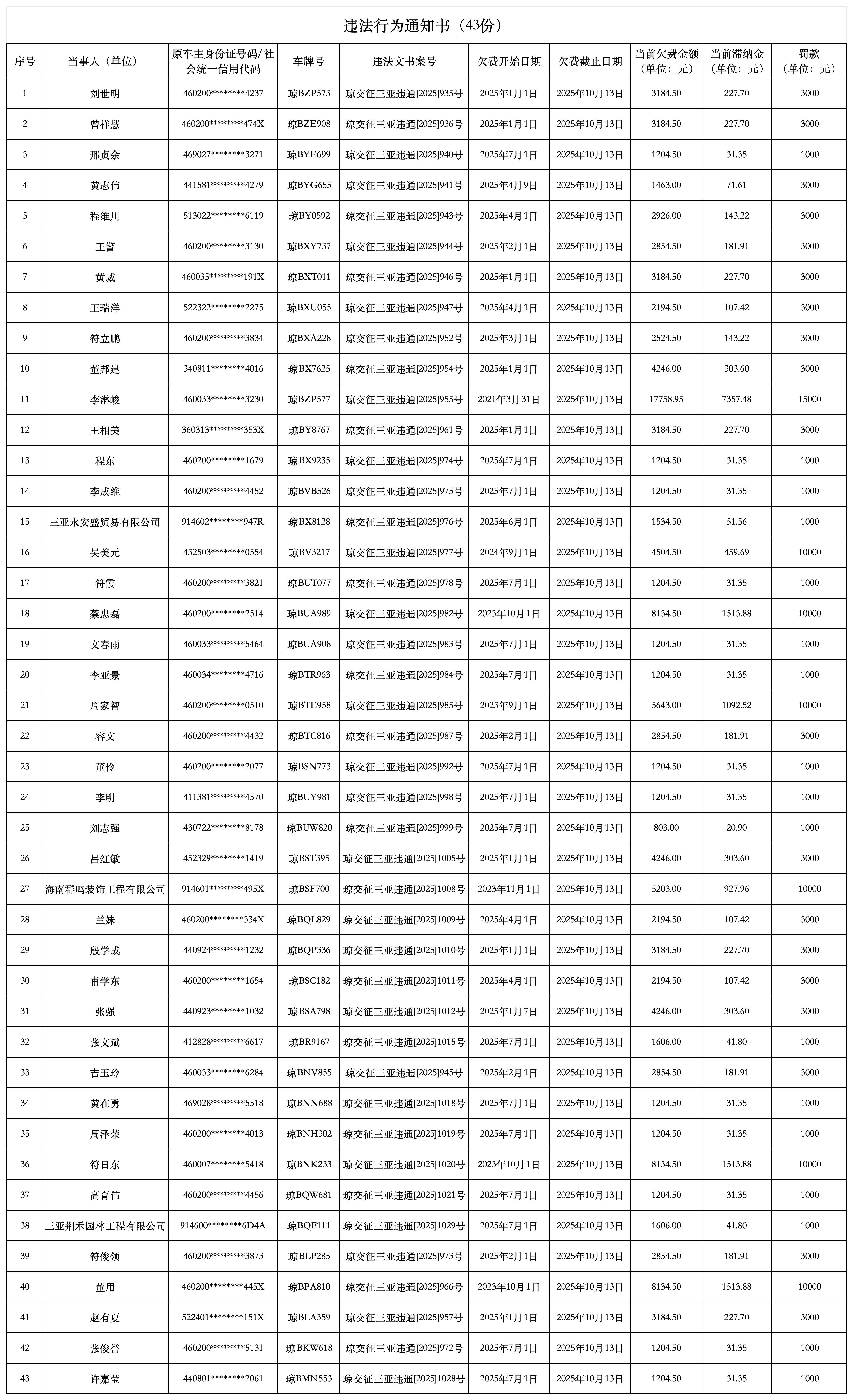 海南省交通规费征稽局三亚分局发布公告四则