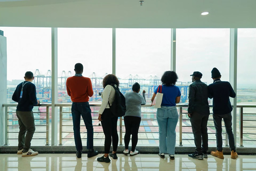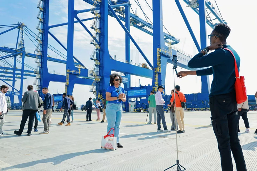 On the morning of November 25, media journalists from 33 Global South countries, including Russia and Ethiopia, visited the Yangpu International Container Terminal, continuing to document the port's rapid development from diverse perspectives.