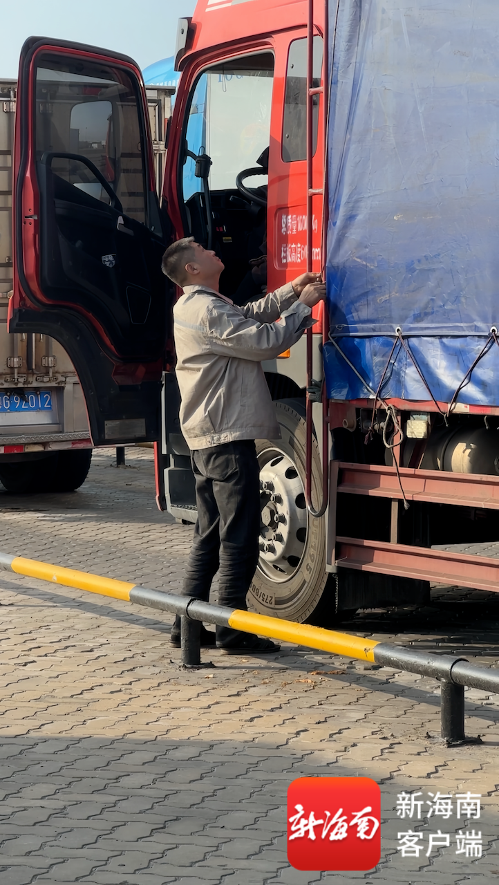 不远处,来自北京的杨师傅正弯腰整理车厢上被风吹起的篷布,他的货车里,满满一车三亚西瓜,色泽鲜亮、饱满圆润,透着新鲜的气息。“我跑琼州海峡运输5年的时间,每年春运最头疼过海排队,去年光排队就花了不少时间,车上的水果都差点闷坏了。”杨师傅抬手擦了擦额头的汗珠,语气里满是感慨,话锋一转又露出舒心的笑容,“今年听说新海港有绿通快办服务,我提前就预约好了,从进场到查验结束,前后才用了十几分钟,这效率是真的高,太让人惊喜了。”