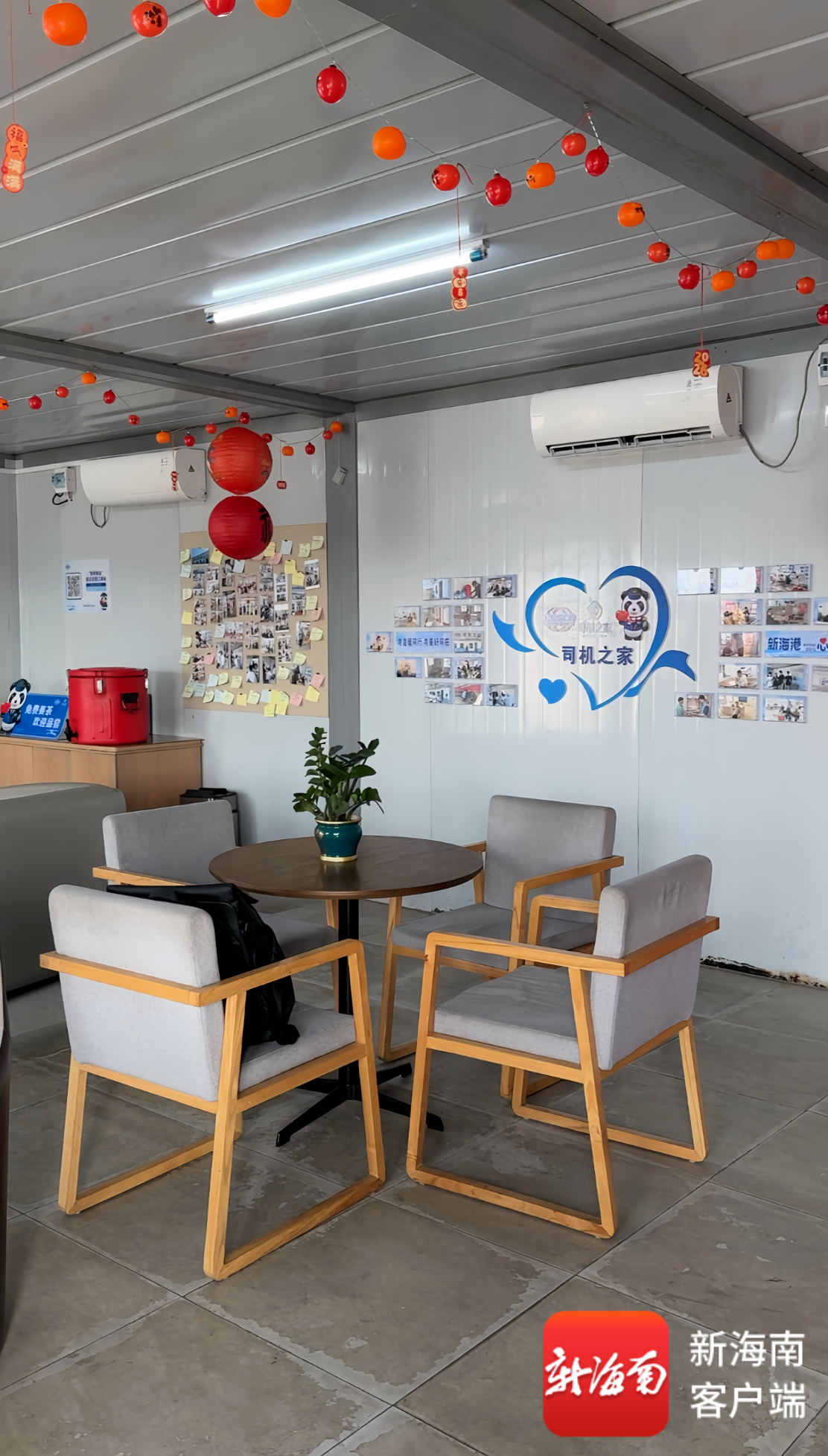 韩妤进一步介绍,为切实保障待渡货车司机的基本生活需求,新海港的司机之家已实现24小时不间断服务。这里不仅增设了舒适的休息座椅、便捷的充电接口和充足的热水供应点,还贴心配备了简易维修工具、应急药品等各类物资,并安排专人值守,耐心倾听司机诉求、及时解决实际困难,用温情服务温暖每一位司机的跨海归途。