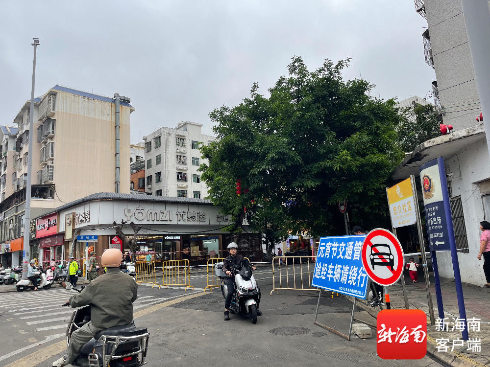 海口府城片区一些路段进行交通管制。记者王燕珍 摄
