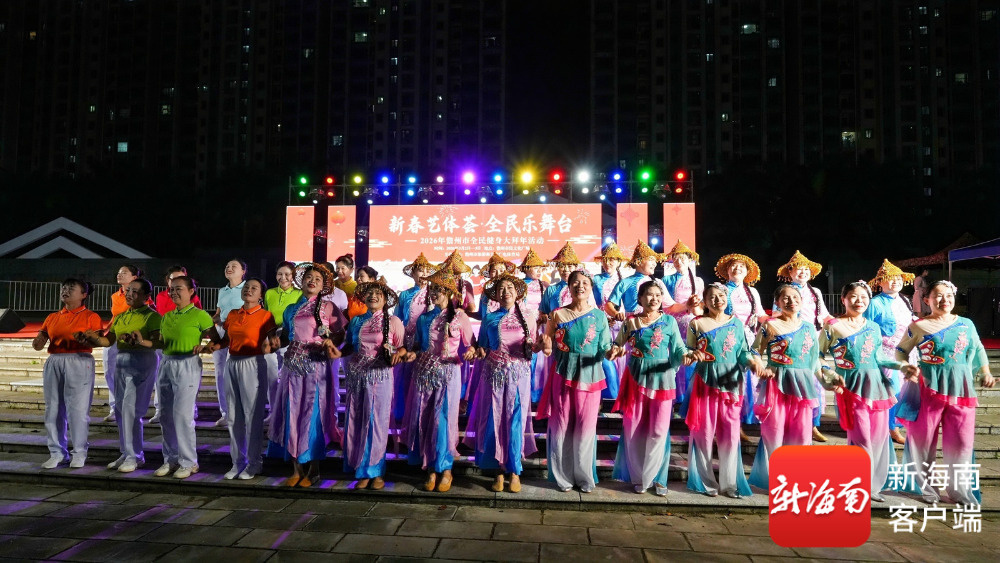 南海网、新海南客户端3月3日消息(记者 梁振文)3月2日晚,由儋州市旅游和文化广电体育局主办的“新春艺体荟 全民乐舞台”2026年儋州市新春全民健身活动在儋州市文化广场举行,以“金鞍贺岁·福满儋洋”为主题,将传统健身、民俗文化与市民互动融为一体,现场人头攒动、掌声不断,在运动的激情与欢笑的暖意中,以健康活力的方式欢度新春佳节。